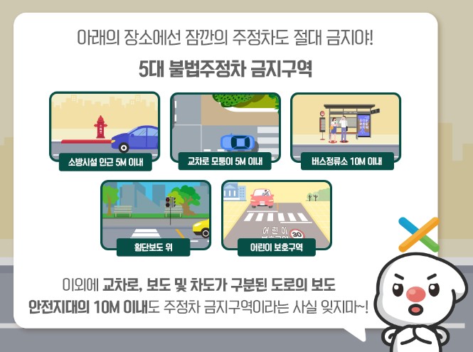 - 어린이 보호구역 및 소방시설 근처 주정차.